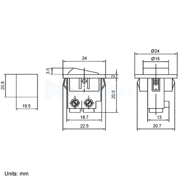 Klahvlüliti ON-OFF ümar 24mm, 6A 250V, must, PRK0009A RS101-7C2